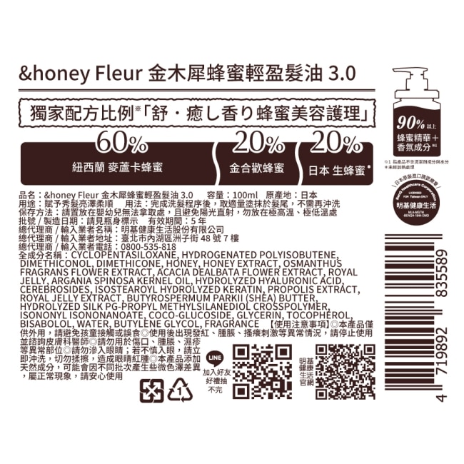 90%蜂蜜精華滲透滋養秀髮光澤柔亮