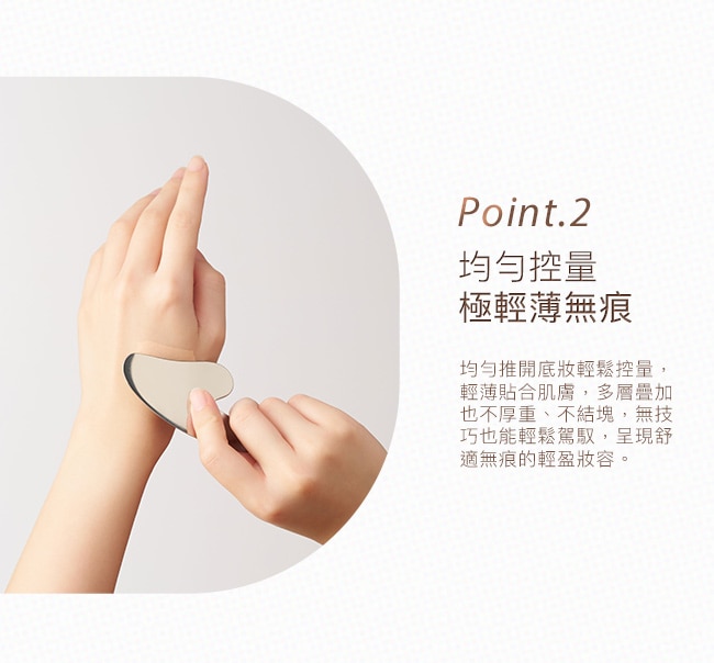 輕鬆推勻粉底精準省粉控量手持舒適好拿握。