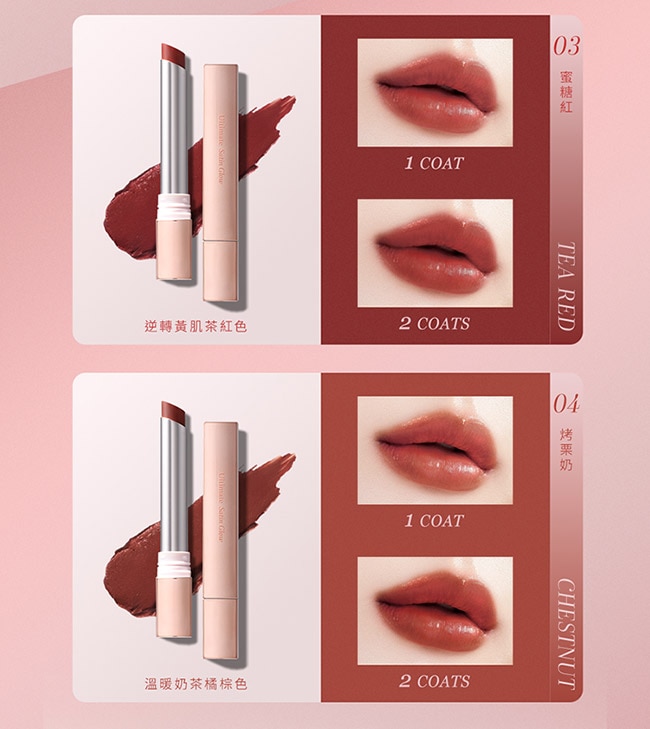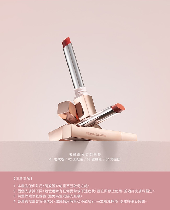 1028 奢絨緞光訂製唇膏01 杏玫瑰/02 太妃茶/03 蜜糖紅/04 烤栗奶