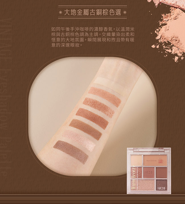 大地百搭色選搭配獨特主題印花與品牌壓紋打造柔美深邃感眼妝。