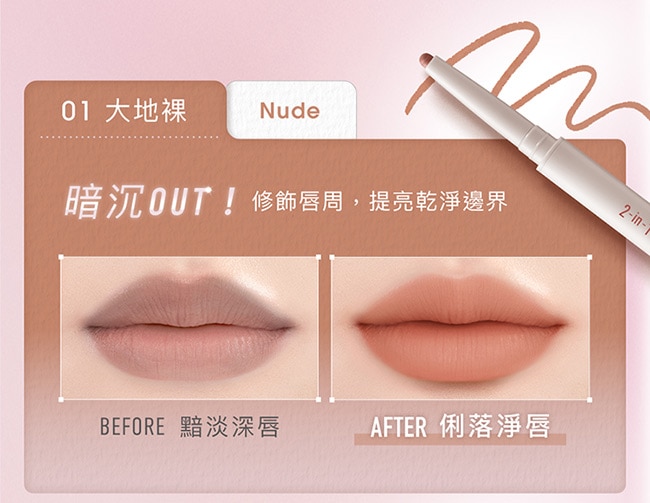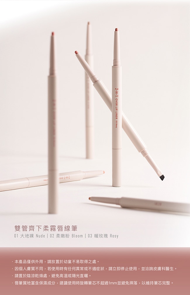 1028 雙管齊下柔霧唇線筆 01 大地裸.02 柔嫩粉.03 暖玫瑰