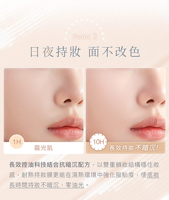 卓越控油與抗暗配方,持久透亮不暗沉、零油光。