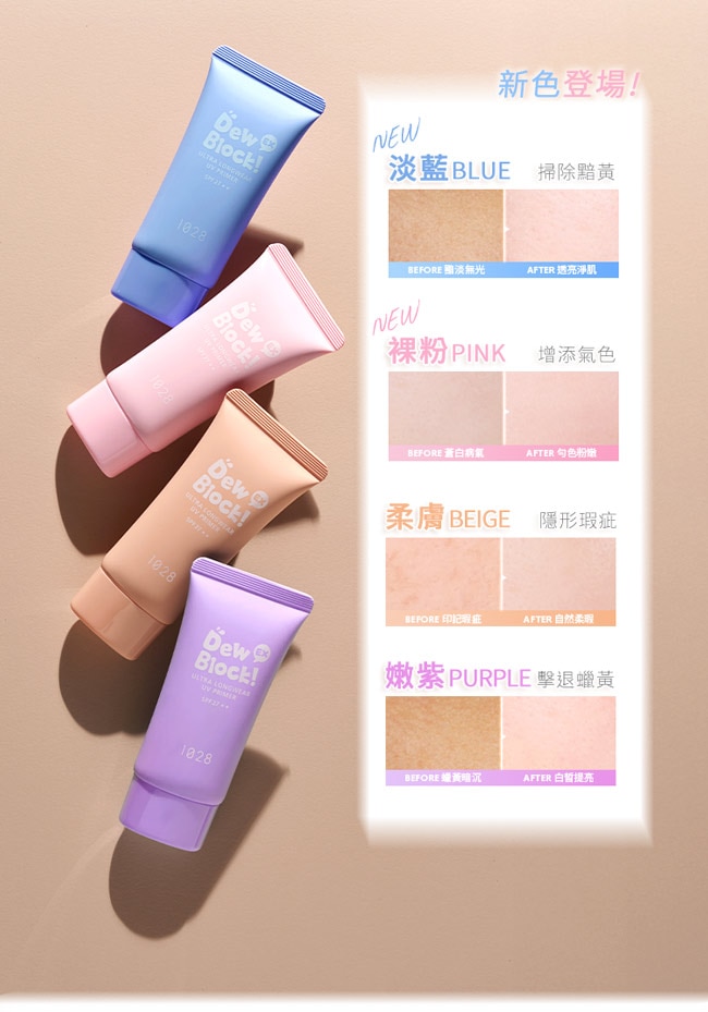 1028 Dew Block! 超保濕UV水潤校色飾底乳EX SPF27 柔膚/嫩紫/淡藍/裸粉
