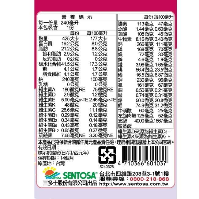 | 規格 | 240ml/罐 |