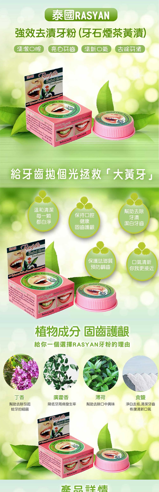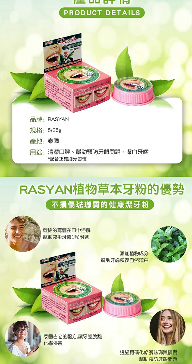 | 商品簡述 | 不損傷牙釉質的健康潔牙粉 泰國古老的配方 |