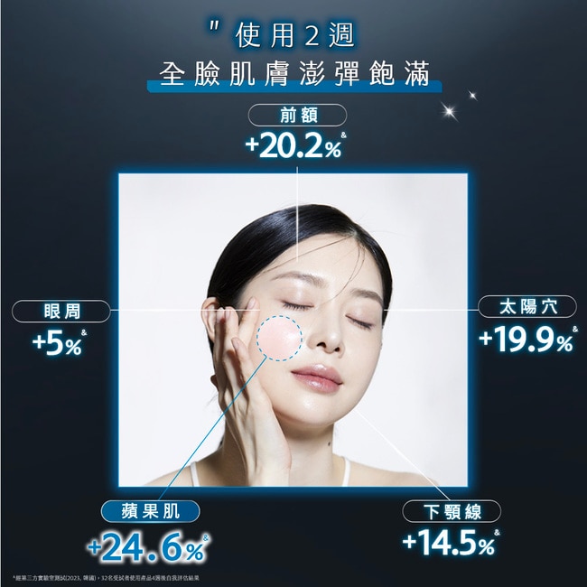 [澎潤飽滿] 添加微分子、滲透玻尿酸: 深入滲透肌底提升肌膚彈力使全臉豐盈澎潤