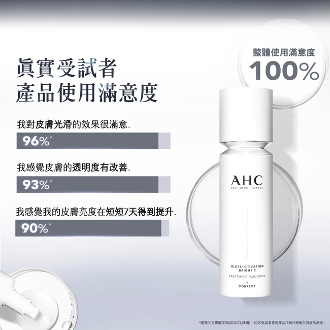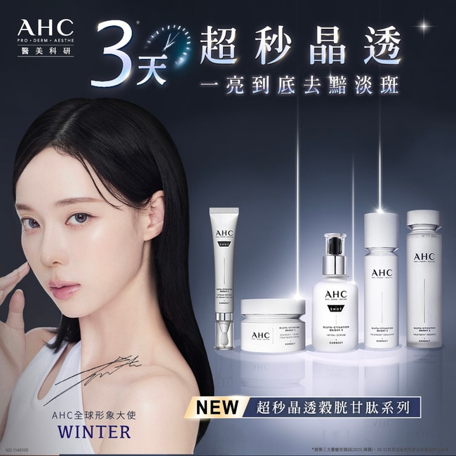 AHC 醫美科研 超秒晶透穀胱甘肽系列 90%受試者認同願意取代科學亮膚美容^