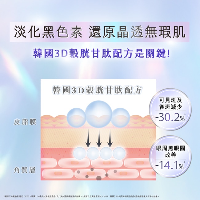 韓國科研【3D穀胱甘肽晶透配方】蘊含3大高純度成分