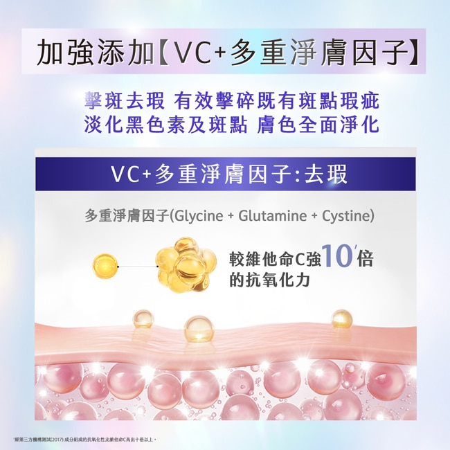 升級添加有效淡斑成分【Vita-C擊斑因子】