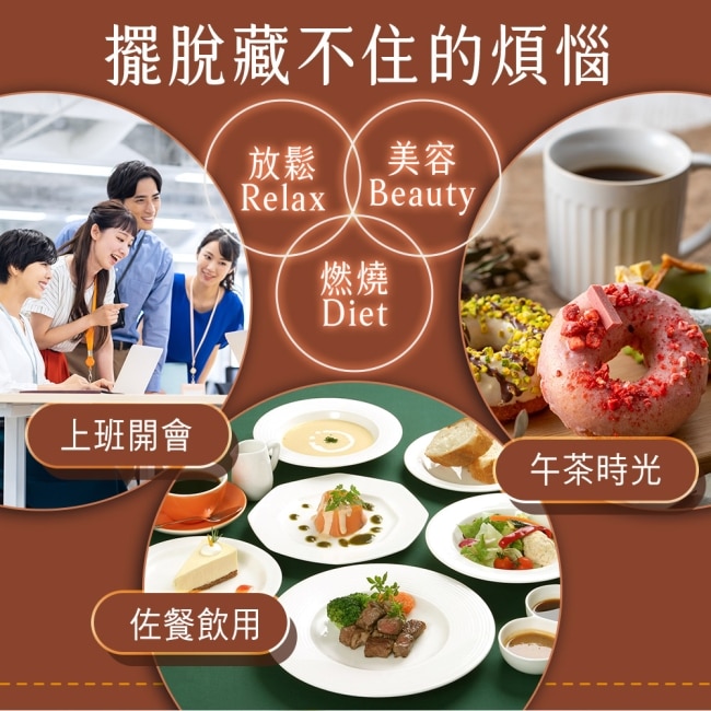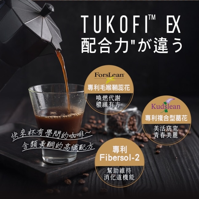 | 成分 | 咖啡粉、難消化性麥芽糊精、葛花複合物【葛花萃取物(葛花萃取物、麥芽糊精)、薑母粉、桑葉萃取粉(桑葉萃取粉、麥芽糊精)、牛蒡萃取物(牛蒡、麥芽糊精)、綠茶粉】、毛喉鞘蕊花萃取ForsLean(麥芽糊精、毛喉鞘蕊花萃取物)、可可粉、紅茶粉、羧甲基纖維素鈉、二氧化矽 | ||||||||