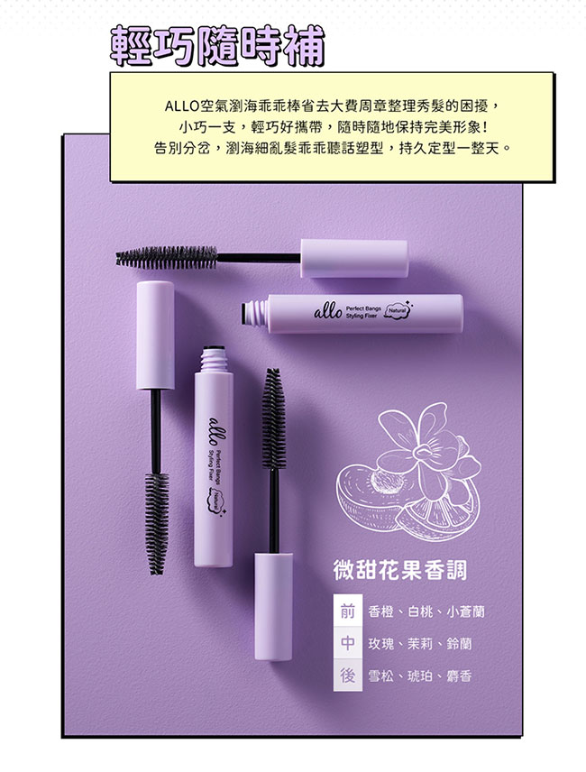 睫毛刷式造型棒不需任何技巧輕鬆整理瀏海與不聽話的毛躁小碎髮添加水解小麥蛋白與何首烏萃取定型同時滋養秀髮打造自然柔順的整齊髮型。