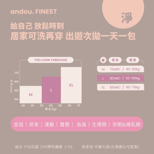 | 商品簡述 | 安多輕旅行無痕免洗內衣-寬肩帶 XL 1’s |