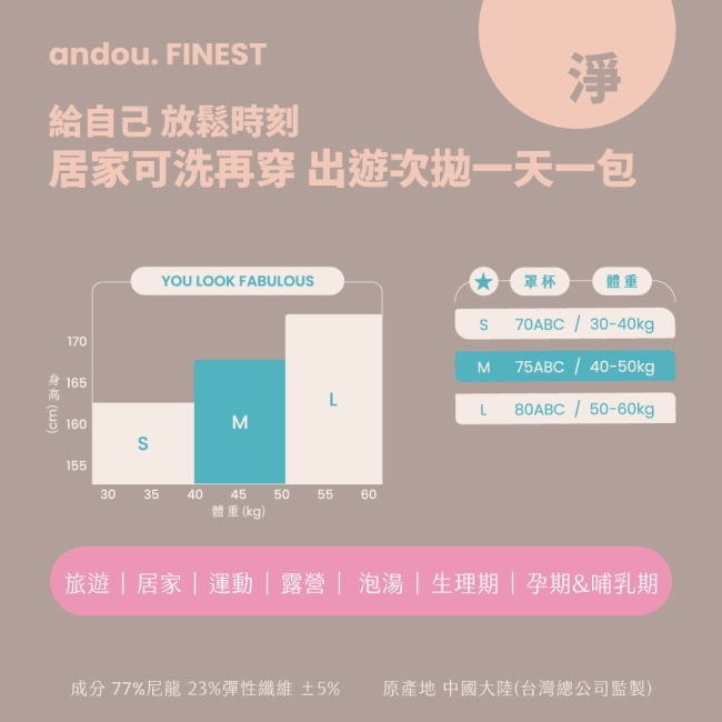 M號 罩杯 75ABC 體重 40 - 50kg
