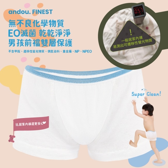 | 商品簡述 | 安多輕旅行男童精梳棉免洗平口褲 S 3入 |