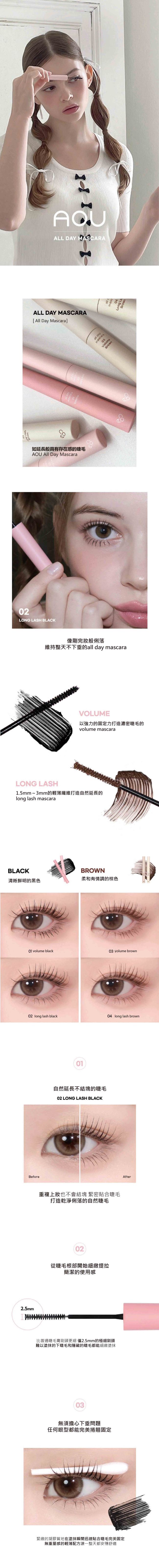 商品簡述AOU 輕薄纖維防水睫毛膏 #04纖長款 棕色 3.3g