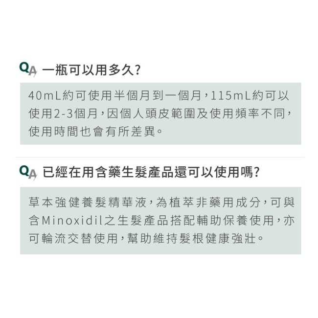 使用方式: 頭髮洗淨吹乾後將草本強健養髮精華液均勻噴灑於頭皮並用指腹塗抹按摩天天使用保養頭皮。