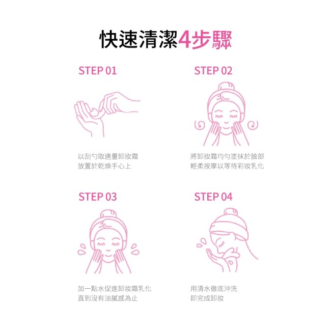【使用方法】 1.維持手部與臉部乾爽以挖勺取適量於臉部 2.以畫圈方式按摩全臉使瞬卸凝霜充分與彩妝污垢融合 3.以紙巾擦拭或清水洗淨