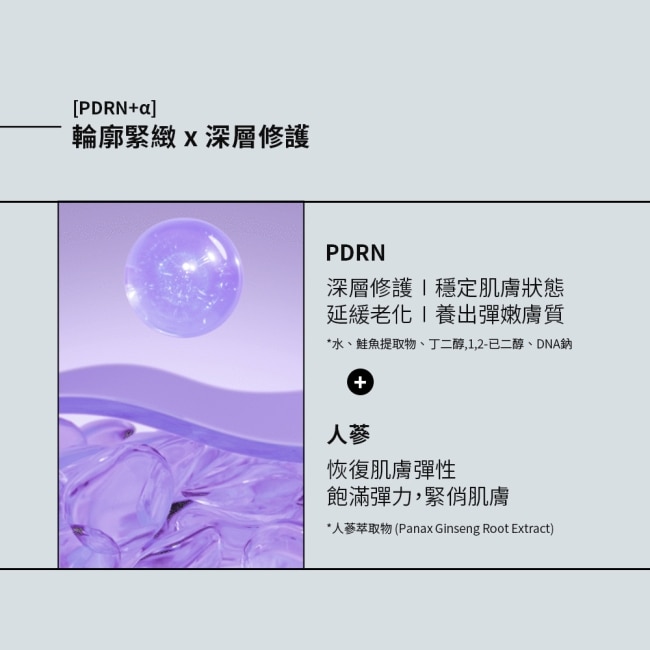 | 商品簡述 | PDRN x鮭魚外泌體+人參萃取敷出彈潤緊實仙女肌 |