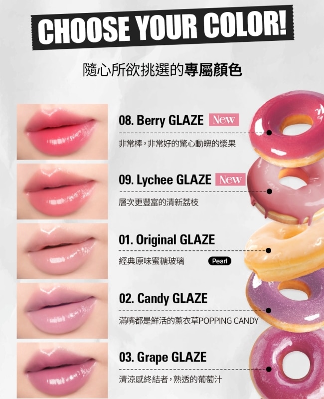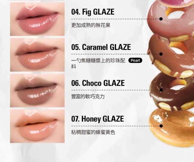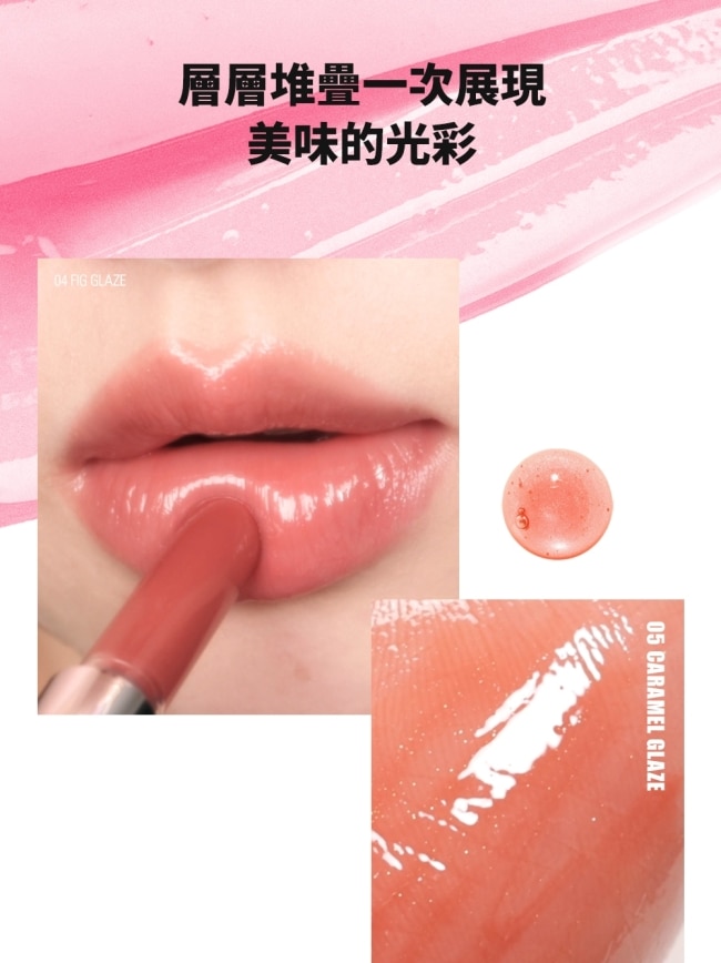 | 商品簡述 | 甜蜜的糖漿感包裹雙唇保濕不黏膩多種顏色混搭創造綿延不斷的鹹甜風味 |