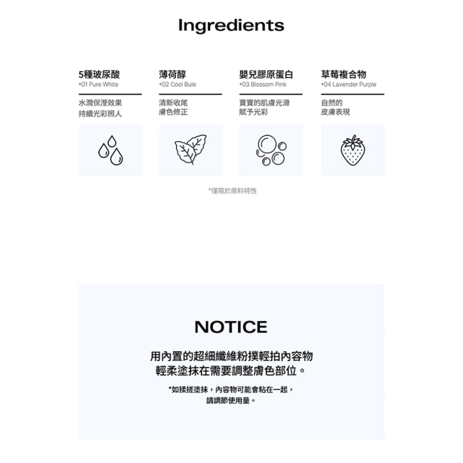 均勻膚色定妝、柔焦、去黃、提亮自然血色感一餅搞定