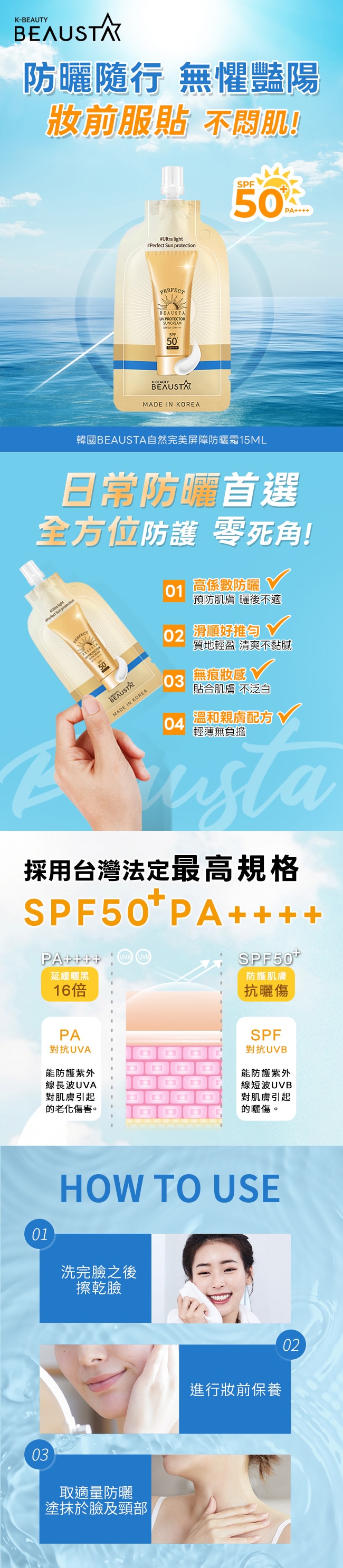 韓國BEAUSTA自然完美屏障防曬霜15ML