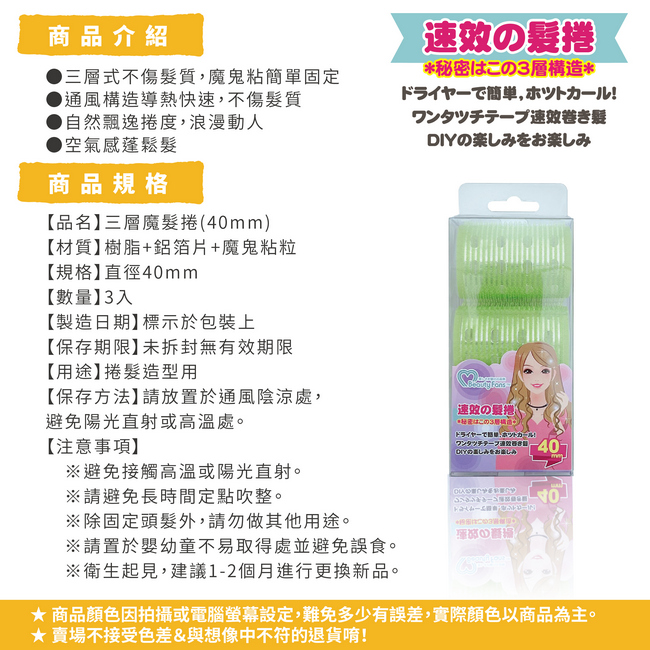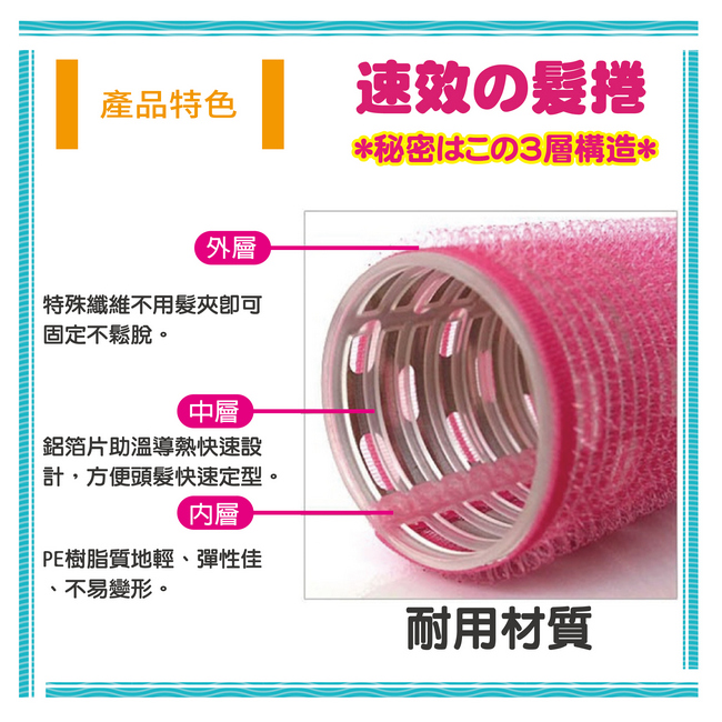 | 商品簡述 | 三層式不傷髮質魔鬼粘簡單固定導熱快速 |
