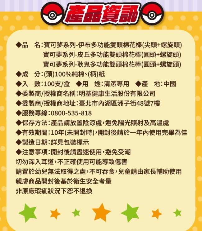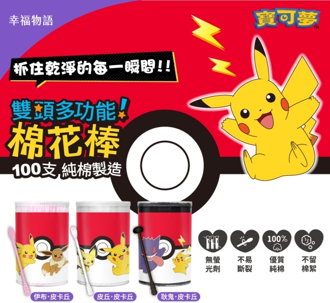 | 商品簡述 | 幸福物語雙頭多功能棉花棒100支(寶可夢系列-伊布)粉 |