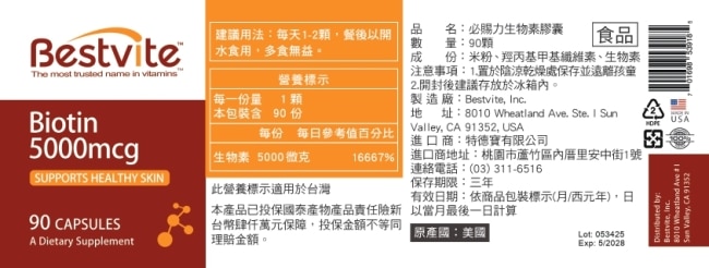 | 品名 【美國BestVite】必賜力生物素膠囊4瓶組 (90顆x4瓶) |