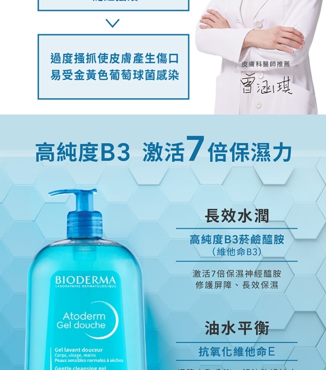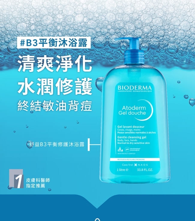 | 商品簡述 | BIODERMA 貝膚黛瑪舒益B3平衡修護沐浴露1L |