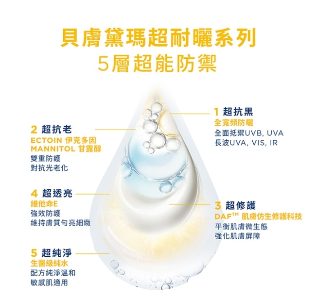 5層超能防禦提供全方位防禦力全面抵禦日曬傷害不曬黑、不曬老