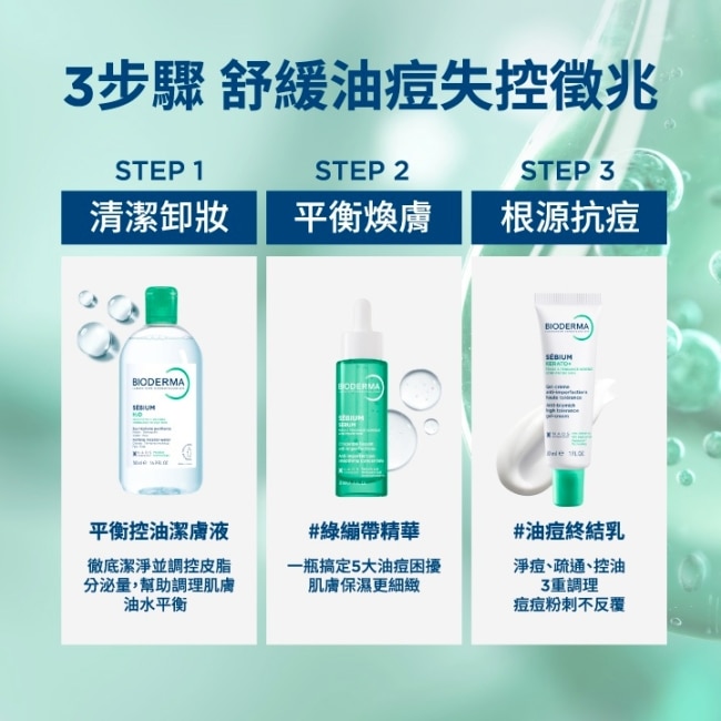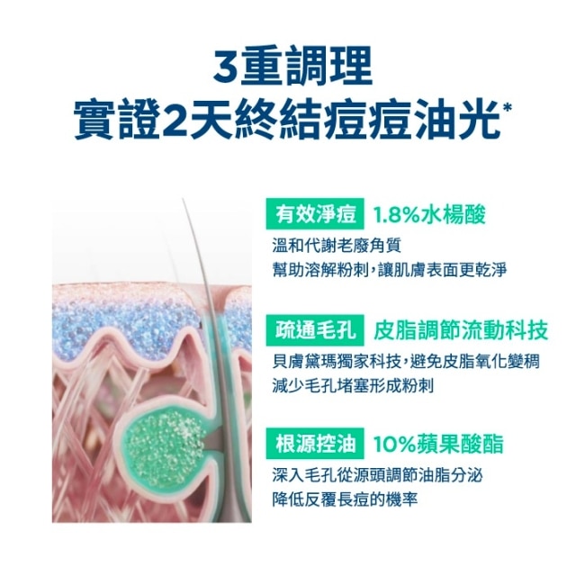 抗反覆根源調理粉刺油痘獨家粉刺溶解技術FLUIDACTIV®&10%蘋果酸酯,調節皮脂健康流動,不易硬化,平衡肌膚微生態,養成不易長粉刺、長痘膚質