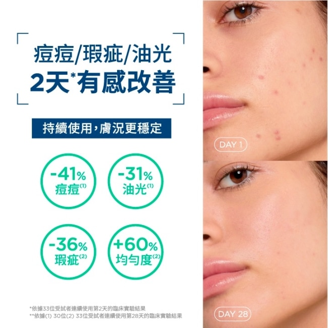 臨床實證,2天有感KO粉刺痘痘不脫皮、抗反覆、超修護唯一結合10%蘋果酸酯&1.8%水楊酸與FLUIDACTIV®粉刺溶解技術,精準滲透毛孔、強效代謝角質、溶解頑固粉刺、快速消痘。同步調節皮脂品質、穩定肌膚微生態、強化肌膚屏障,從根源調理粉刺油痘同步搭載DAF™肌膚仿生修護科技,並且8小時持久保濕,不刺激脫皮,粉刺、痘痘一次狙擊