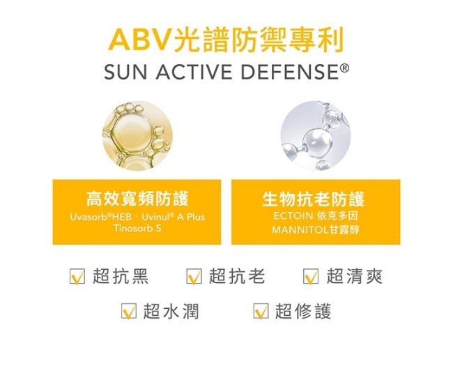 -ABV光譜防禦專利臨床實證有效覆蓋極長波UVAUVB和UVA高效寬頻防護全面防禦光老化傷害維持健康肌膚