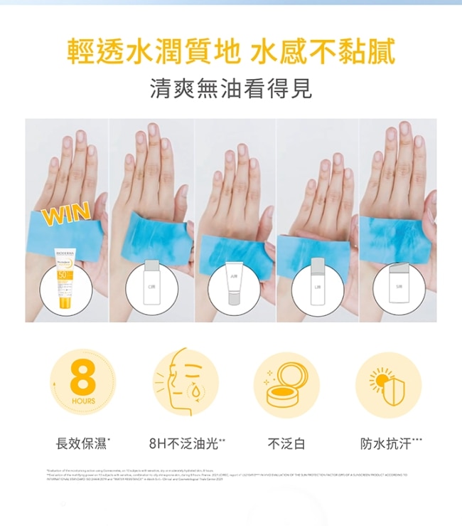 -防水、抗汗、8H長效保濕、不泛油光、上妝不泛白