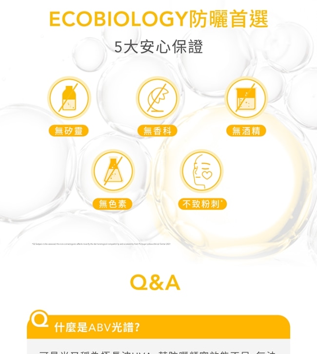 -Ecobiology防曬首選尊重肌膚微生態5大安心保證無矽靈、無酒精、無香料、無色素、不致粉刺肌膚無負擔