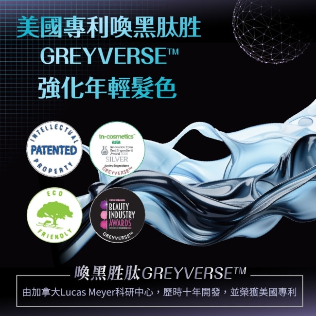 美國專利喚黑胜肽GREYVERSE™: 重喚黑髮活力維護髮根健康。