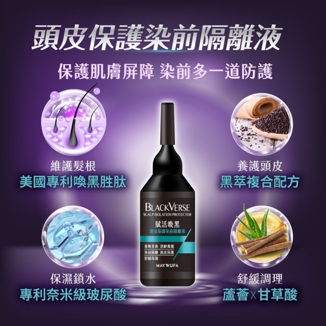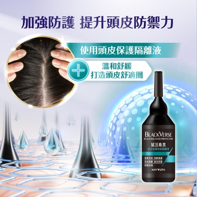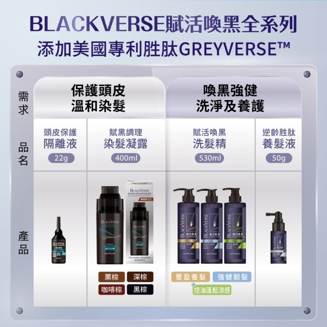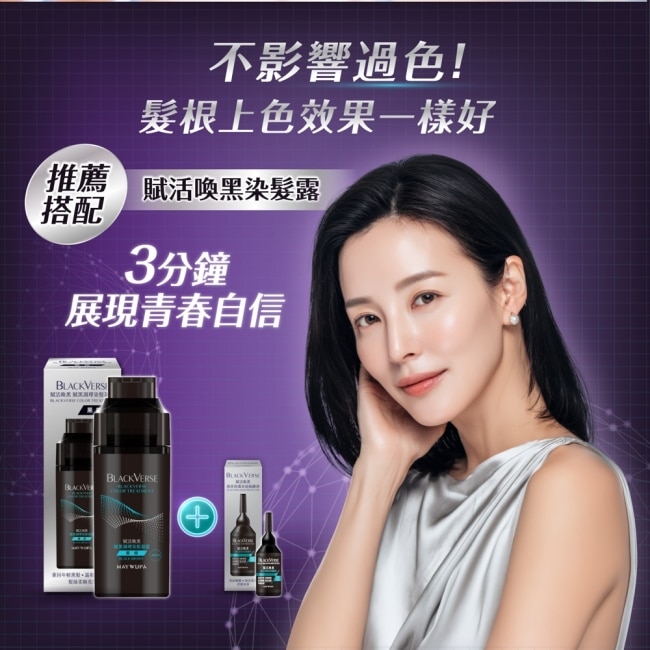 建議搭配Blackverse賦活喚黑染髮露使用不影響過色髮根上色效果一樣好!3分鐘展現青春自信!