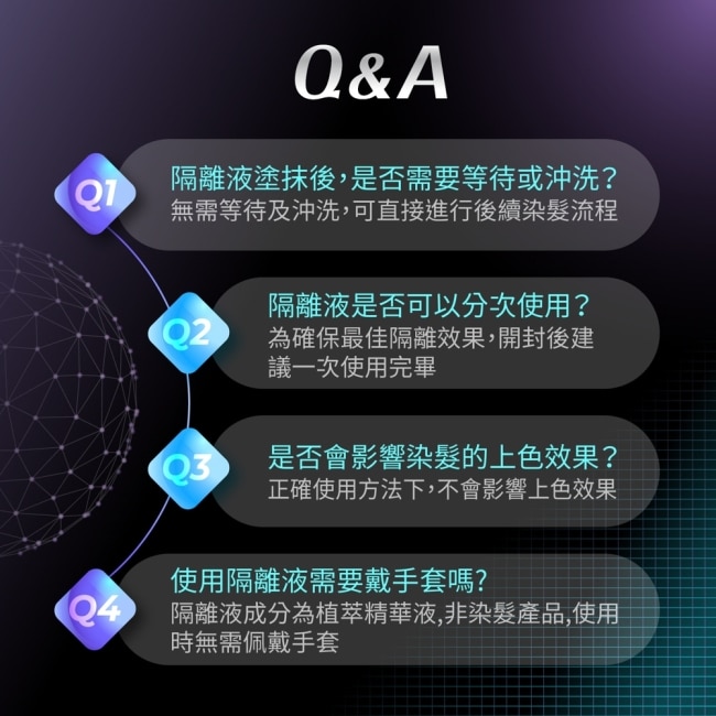 隔離液塗抹後無需等待及沖洗可直接後續染髮流程。