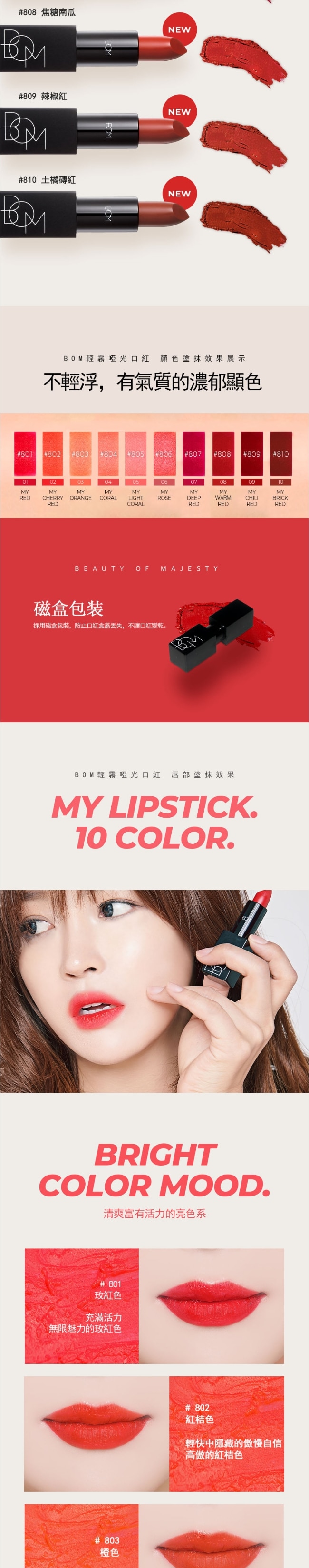 BOM 碧波曼 輕霧啞光口紅 #807大红色