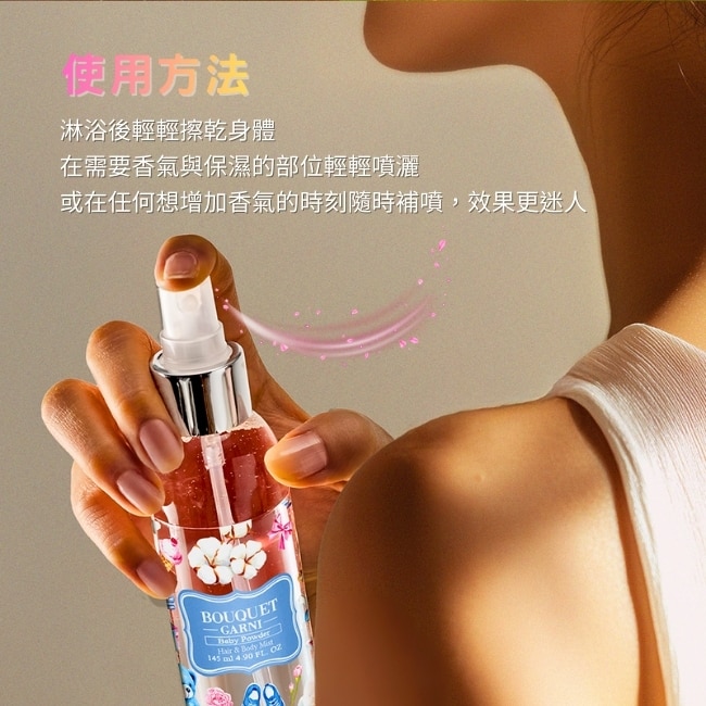 使用體驗: 輕鬆地將噴霧噴灑在皮膚、髮絲上是您日常生活中增添儀式感的包裡必備好物。