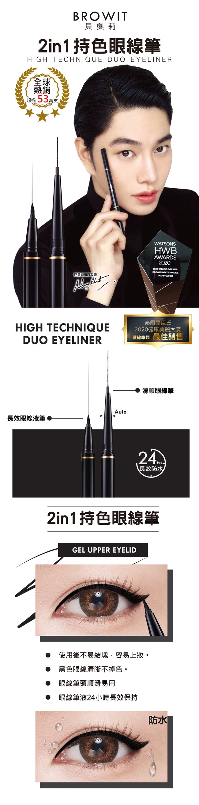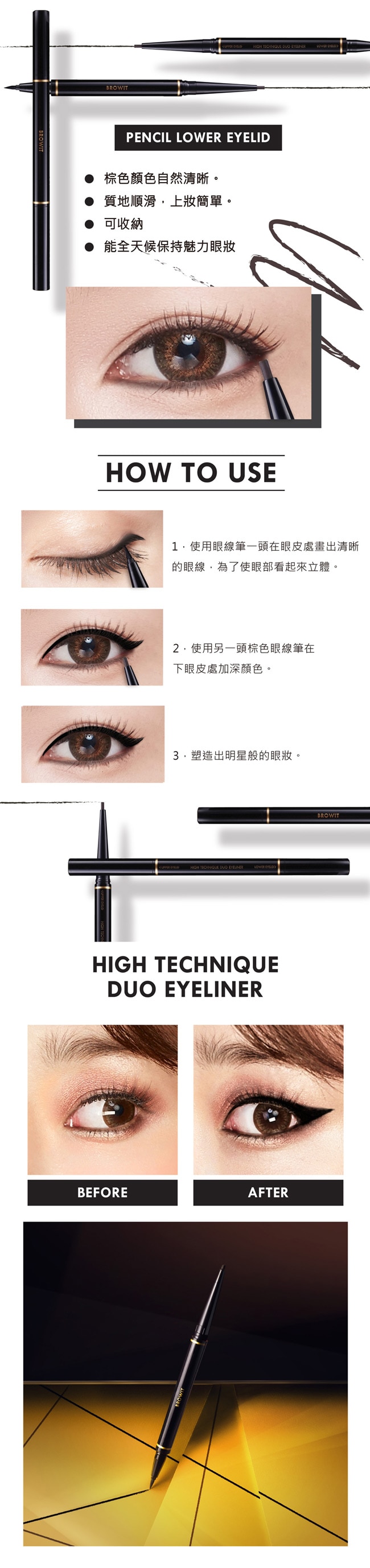 | 商品簡述 | 上眼線液筆X 下眼線筆 一筆到底零失手 全天候防水 抗暈 持久顯色 超速快乾眼神不斷電 |