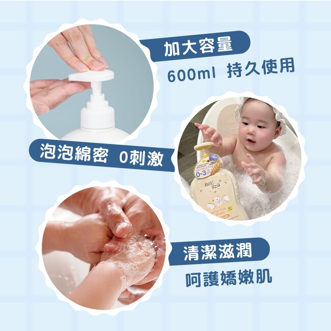 嬰兒全身沐浴露- 無硫酸鹽配方溫和清潔、不刺激肌膚。含黃柏、桃葉、朝鮮薊萃取舒緩肌膚不適。添加維生素 B 群與維生素 E滋潤肌膚、預防乾燥。通過皮膚科測試適合敏感肌寶寶。淡雅香氣幫助寶寶放鬆、安穩入睡。