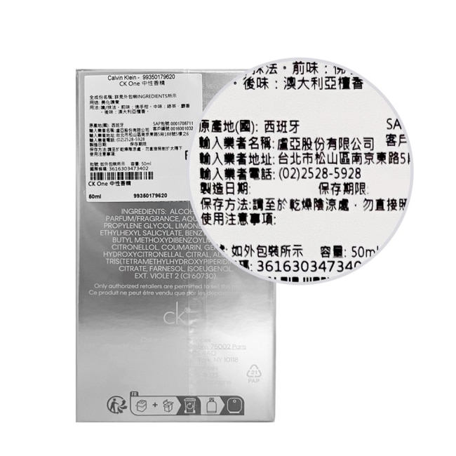 中文品名Calvin Klein CK ONE中性香精(50ml)-公司貨