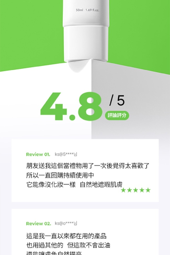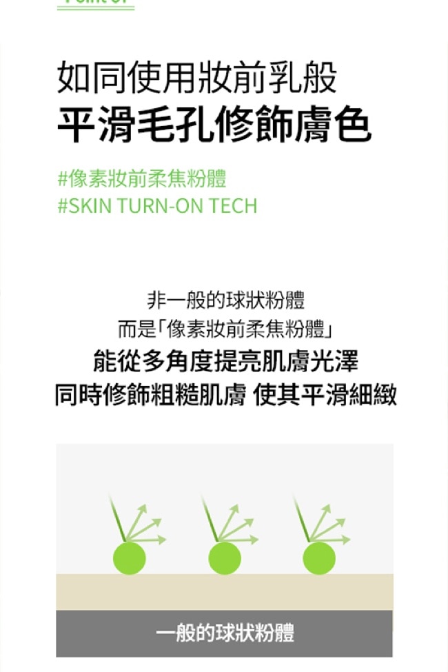 | 商品簡述 | 不堵塞毛孔、不致粉刺、不致痘 65%水感精華+無乳化劑專利 潤色遮瑕、清爽控油、柔焦美肌 |