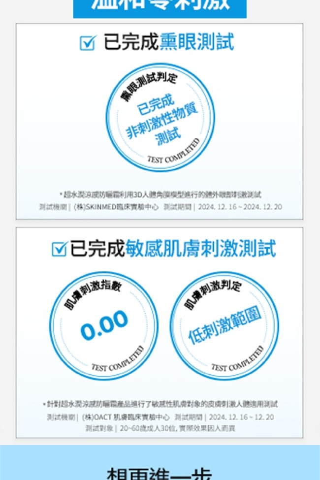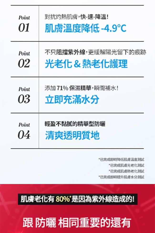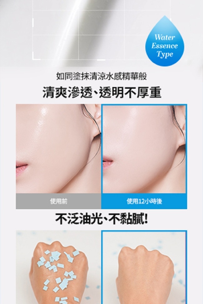 降低肌膚溫度,舒緩灼熱感 清透不黏膩,快速吸收且不熏眼 經敏弱肌測試,適用所有膚質