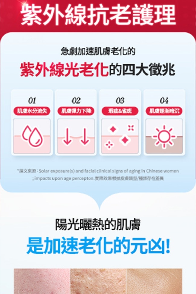 不只阻擋紫外線,更緩解陽光留下的痕跡添加71%保濕精華,瞬間補水
