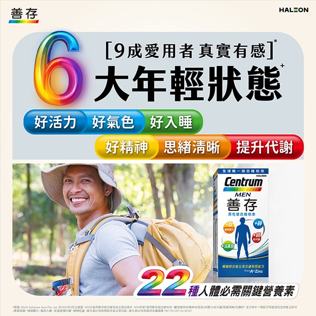 *本品與善存成人綜合維他命錠相比,增量維生素B1、鋅維生素B1有助於維持能量正常代謝鋅有助於維持生殖機能
