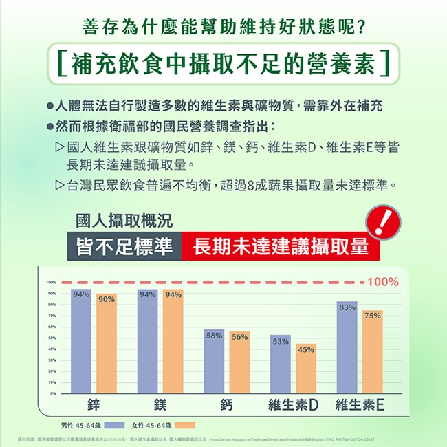 *本品與善存成人綜合維他命錠相比,增量維生素B1、鋅維生素B1有助於維持能量正常代謝鋅有助於維持生殖機能
