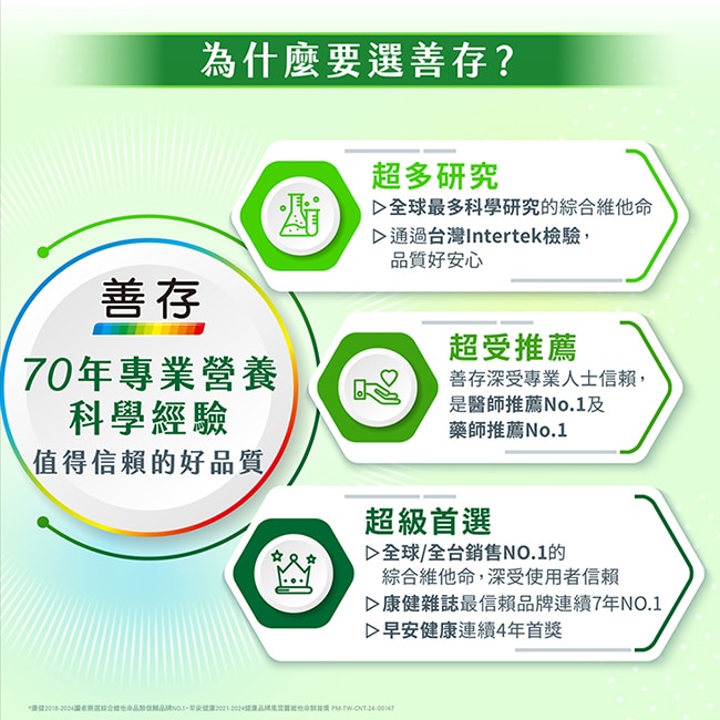*本品與善存成人綜合維他命錠相比,增量維生素B1、鋅維生素B1有助於維持能量正常代謝鋅有助於維持生殖機能