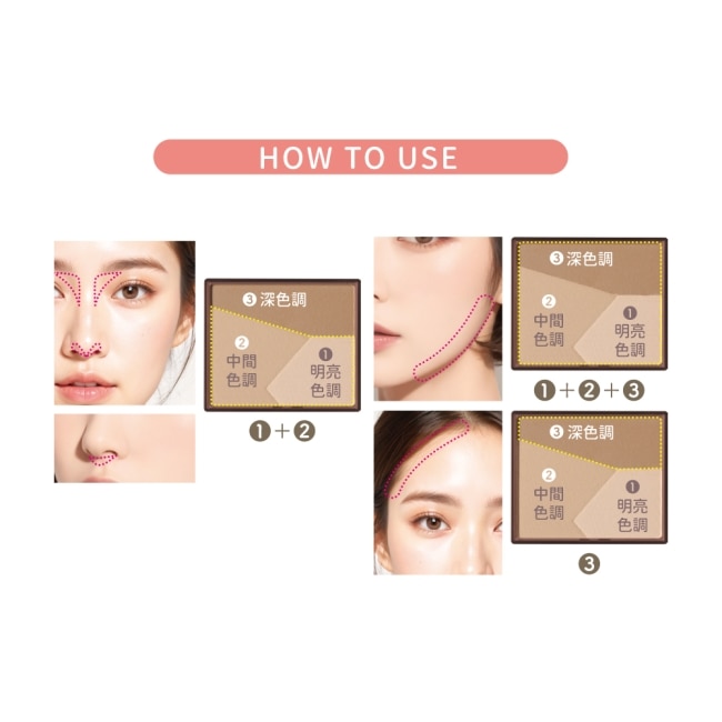 由米色到紫棕色的調色。適合想要加強修容立體感時使用